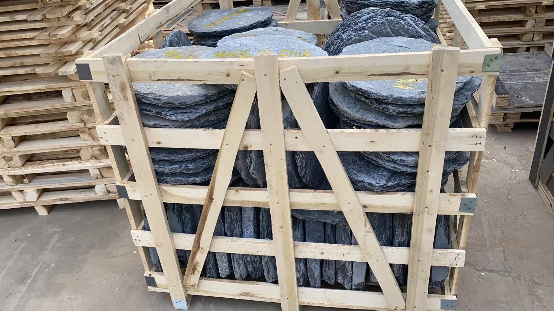 1, Material: yellow slate, green slate, black slate, pink sandstone